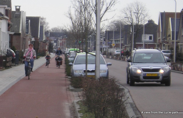 Dutch people do cycle on a mixture of cycle-paths and roads. However, this does not mean that cyclists in the Netherlands spend much of their time mixing with motor vehicles.