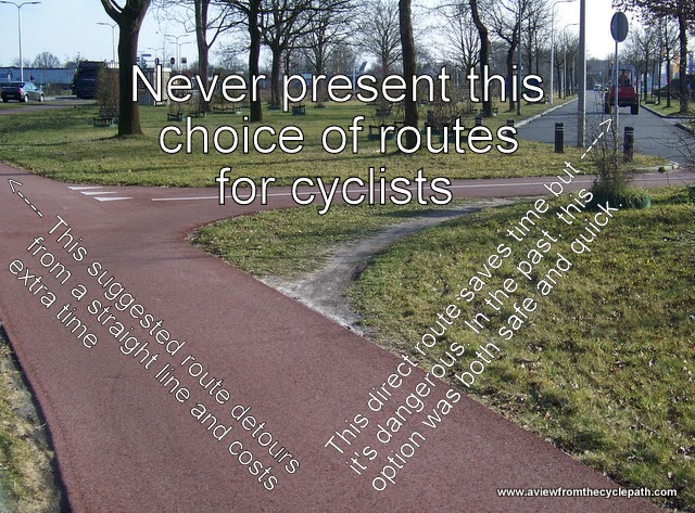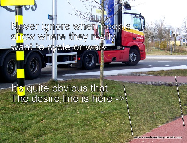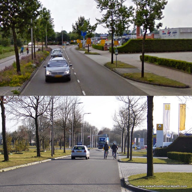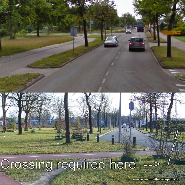 There are many posts on this blog which illustrate the types of infrastructure which work best to make cycling efficient and safe. Much of the Dutch success is based on building of good cycle-paths everywhere they are required. Unfortunately, mistakes like this are made. It's important not to assume that cycling infrastructure is good just because it's Dutch.